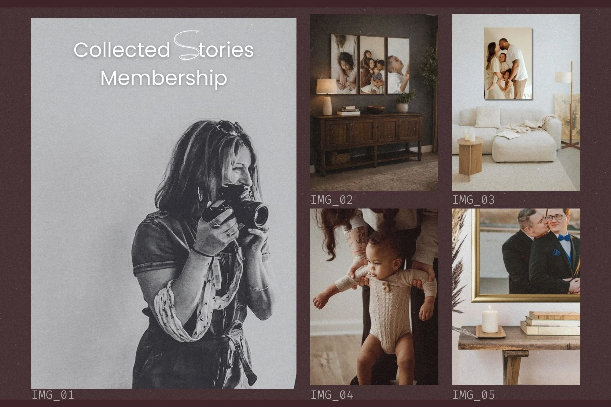 The Collected Stories Membership is a 12-month portrait and home experience designed to help families intentionally document their seasons and display them beautifully within their space.